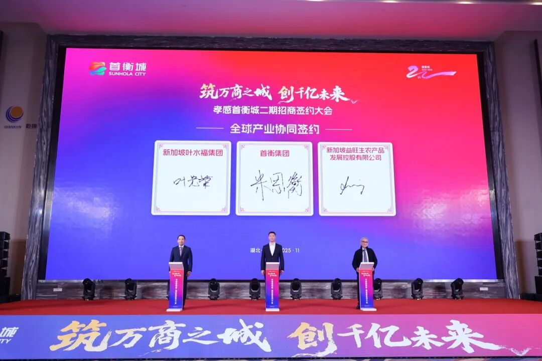 11月28日,“筑萬商之城 創(chuàng)千億未來——孝感首衡城二期招商簽約大會”在湖北孝感隆重舉行。大會吸引泰國、新加坡、巴西、新西蘭等多國駐華使節(jié)與行業(yè)領(lǐng)袖現(xiàn)場參會,智利、菲律賓等國的全球合作伙伴亦通過視頻連線表達(dá)深度合作愿景。在備受矚目的全球產(chǎn)業(yè)協(xié)同簽約環(huán)節(jié),孝感首衡城與益旺生農(nóng)產(chǎn)品發(fā)展控股有限公司(APC)、新加坡葉水福集團(tuán)正式達(dá)成戰(zhàn)略合作。